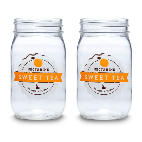 This is a custom designed 16-ounce mason jar complete with 44º North® branding. Sweet tea mark on the front, farm-to-glass on the reverse. Sold as a set of 4.
